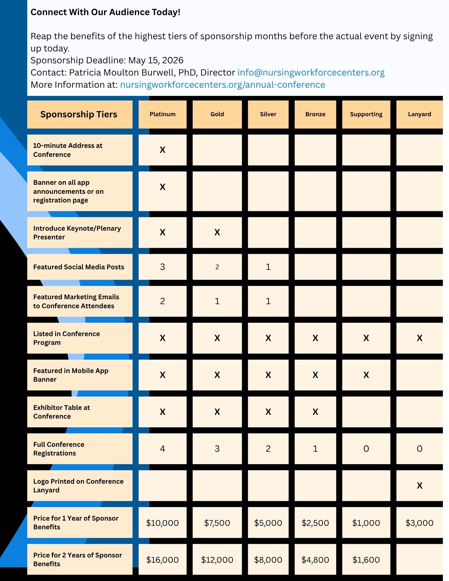 Refund Policy: A full refund of registration ticket prices are available through June 10th when ticket sales close. Email Info@nursingworkforcecenters.org to request a refund. NO REFUNDS will be processed after June 10, 2026.
