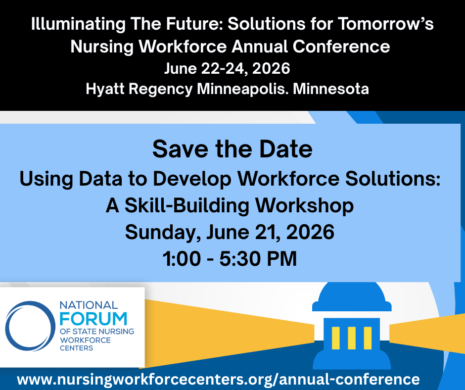 The National Forum of State Nursing Workforce Centers (National Forum) is excited to host our 2026 Annual Conference on June 22-24, 2026 at the Hyatt Regency located in Minneapolis, MN.